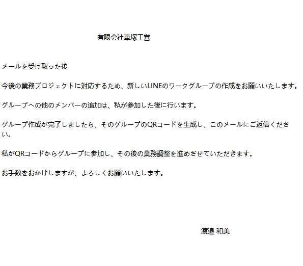 現在、当社「有限会社車塚工営」および代表取締役社長の名を騙り、LINEグループの作成を依頼する内容の迷惑メールが複数確認されております。